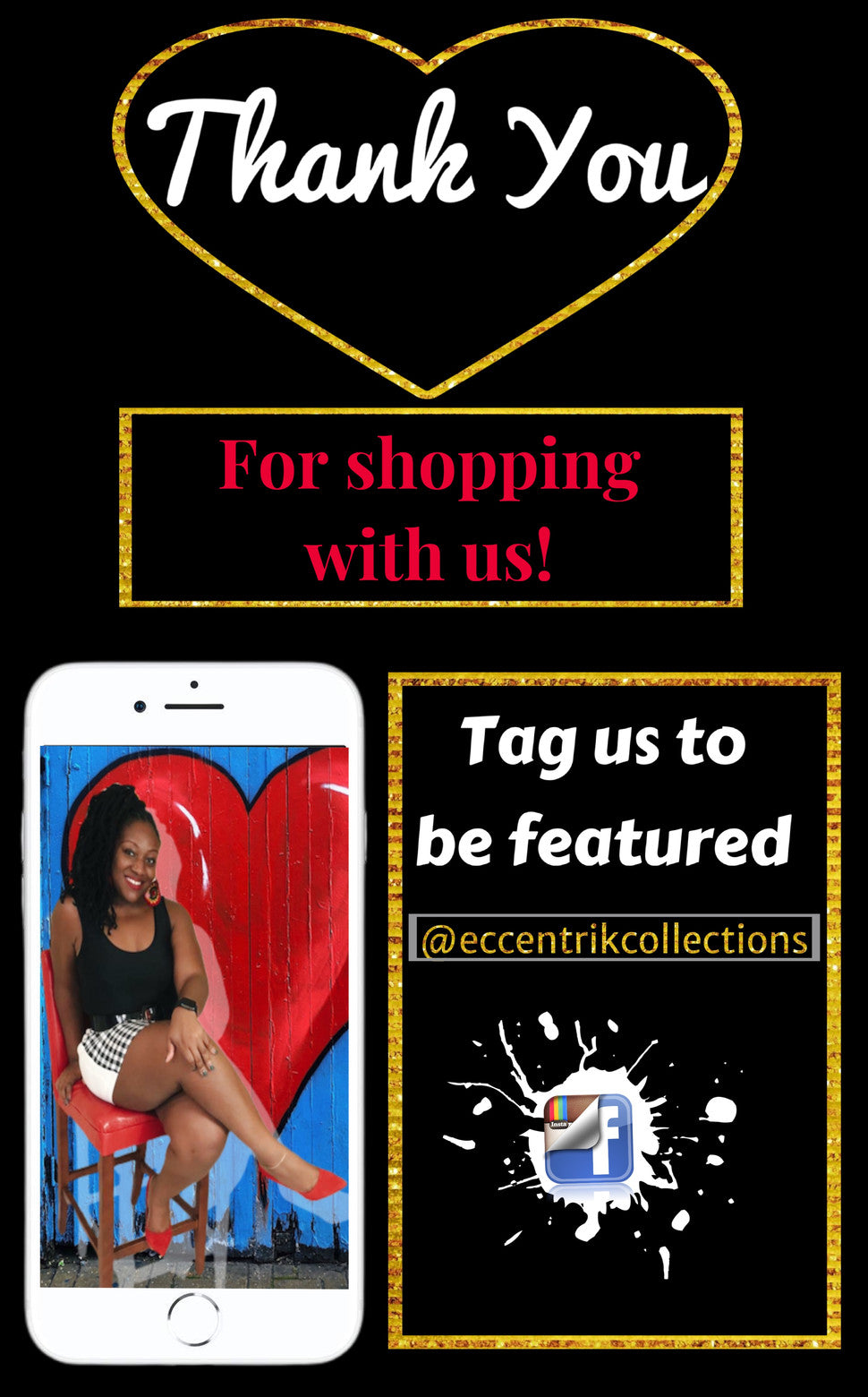 Snap a picture of you wearing our outfit(s) and share it on Instagram and Facebook. Tag us on IG and FB @eccentrikcollections and please use Hashtag: #ECCENTRIKDIVAS.